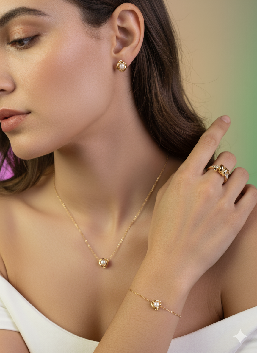 A versatile collection of four everyday essentials crafted to shine longer. Each piece is made with premium materials and coated with advanced anti-tarnish technology, ensuring your jewellery stays radiant and lustrous for years. Lightweight, skin-friendly, and minimal in design ? perfect for both daily wear and special occasions.